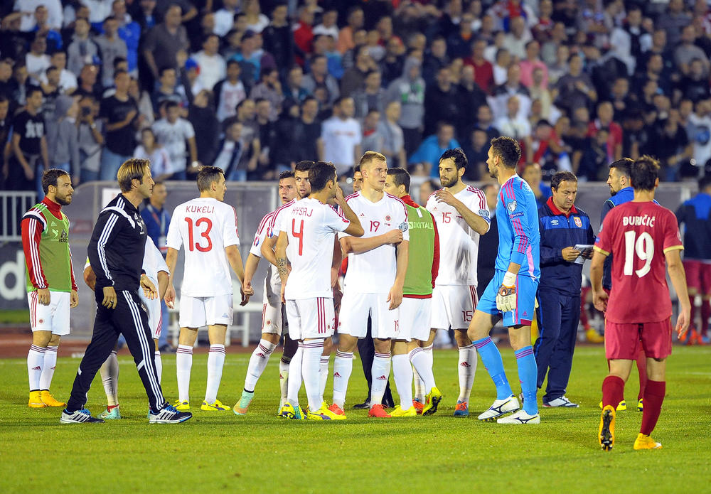 Utakmica je po Srbe počela očajno! Albanci su preko Taulanta Džake i Lorika Cane došli do odlične prilike za gol, ali su se i tom prilikom koristili lukavim metodama. Izveli su korner dok smotani Srbi nisu gledali, Cana je po zemlji spustio loptu do Džake, a ovaj ju je lagano smestio u nebranjenu mrežu Vlade Stojkovića.
