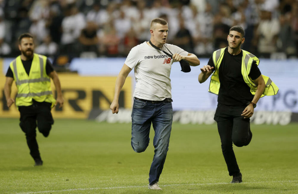 INCIDENT U FRANKFURTU! Obezbeđenje JEDVA savladalo navijača koji je prekinuo utakmicu! (FOTO)