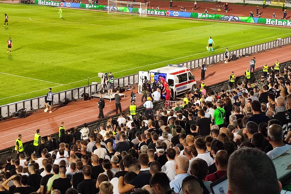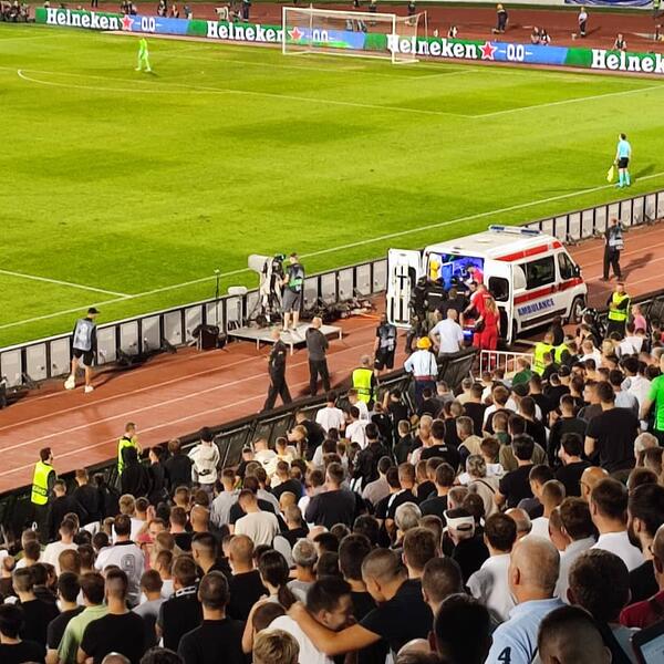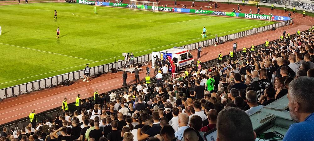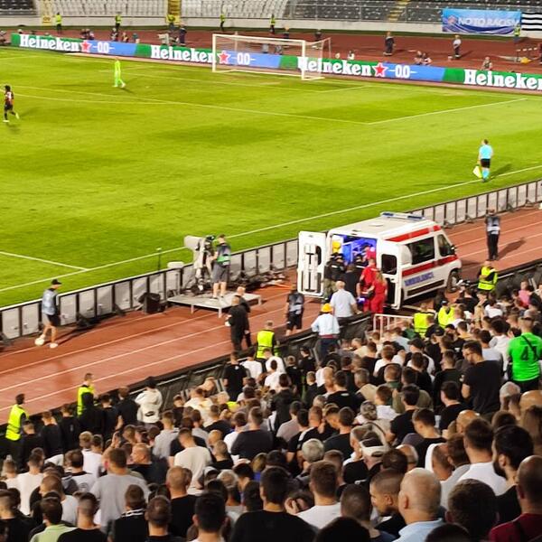Ipak, u jednom trenutku je dešavanje sa terena palo u drugi plan s obzirom da je jednom od navijača u Humskoj pozlilo, da je morala da interveniše i hitna pomoć.