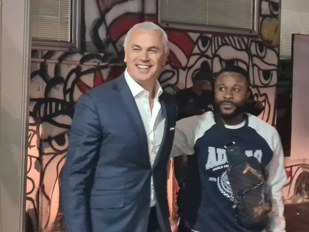 Posebno je čestitao strelcu četvrtog gola, Geloru Kangi sa kojim je ispozirao novinarima.
