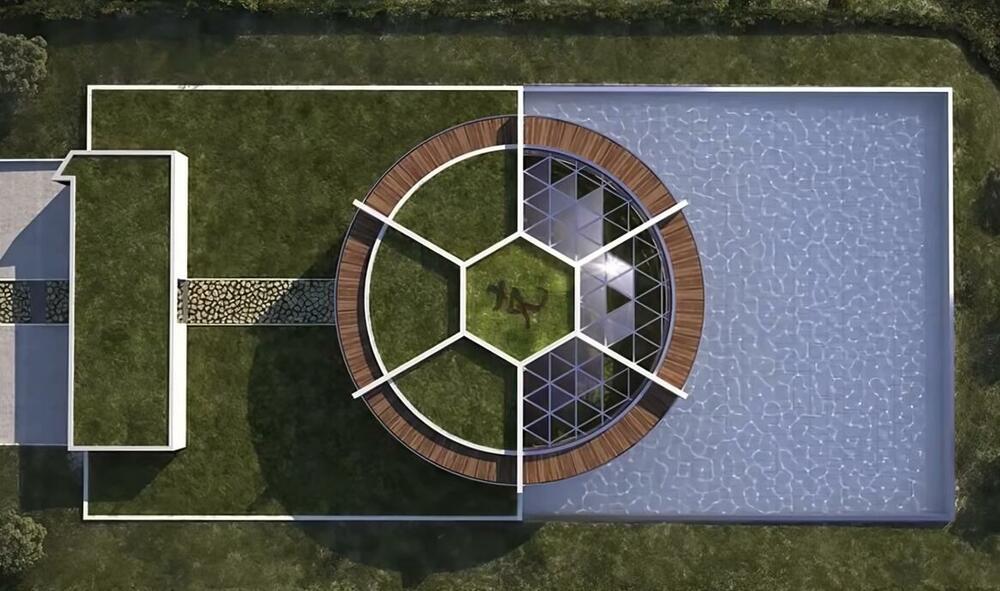 Ali to nije sve. Dok je sama struktura okrugla, ostatak parcele izgleda poput fudbalskog terena podeljenog na dva dela - prvi ! Takođe, sa strukturom ispred glavnog objekta, iz vazduha ova kuća izgleda kao broj 10 – broj na drese poznatog fudbalera u Argentini i nekad u Barseloni - i zato se zove One-Zero Eco-House.