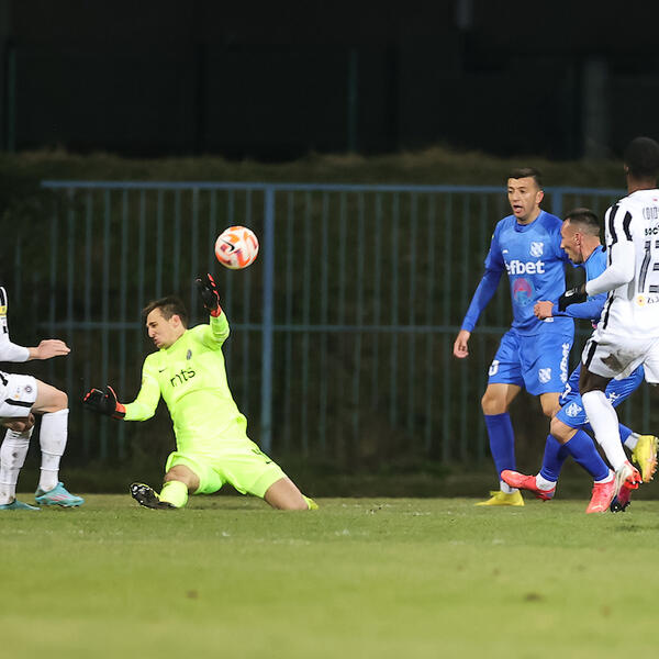 Utakmica u Lučanima krenula je sjajnom šansom za Kvinsija Meniga, Holanđanin je sebi izborio lepu poziciju za udarac, ali mu je golman domaćina Luka Savić fantastično zaustavio ovaj pokušaj.