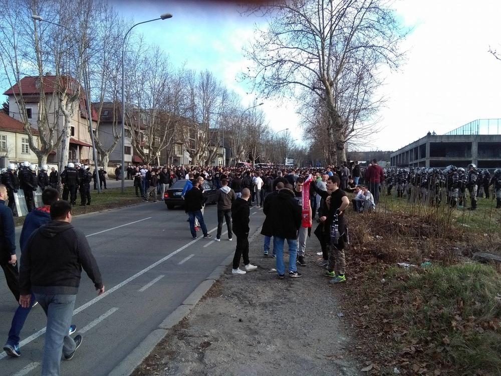 16:11 - Navijači Partizana su već pred Marakanom, okruženi Žandarmerijom!