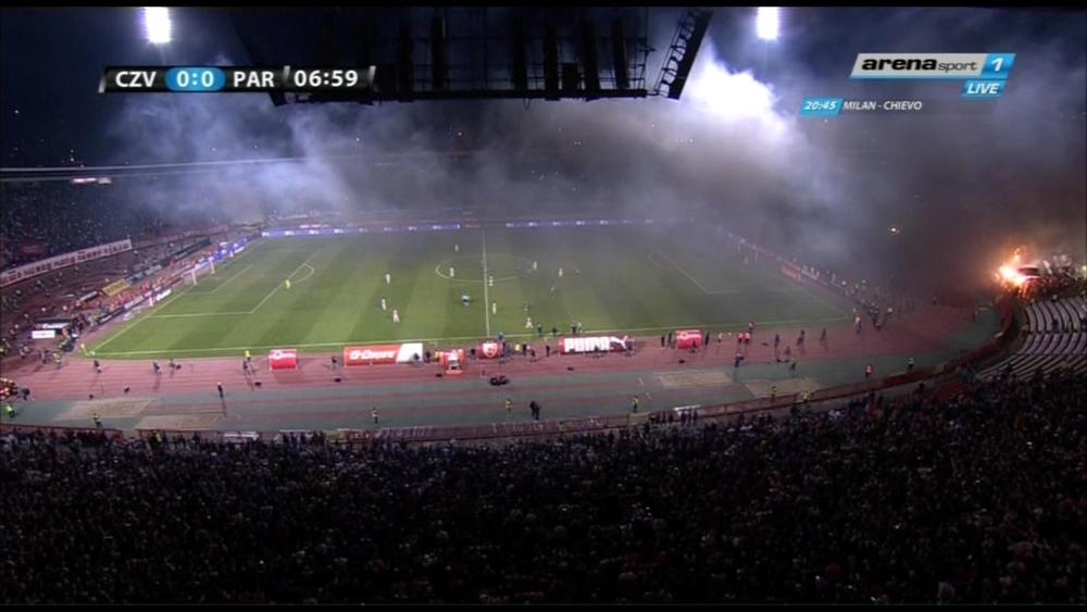 7. minut - Utakmica je prekinuta zbog bakljade Grobara!