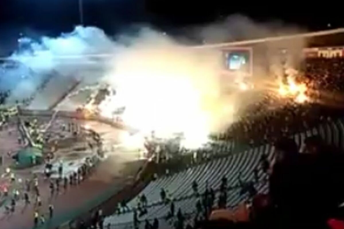 Grobari su zapalili ogroman broj baklji na južnoj tribini koje su potom pobacali na atletsku stazu, gde su bili poređani žandarmi.