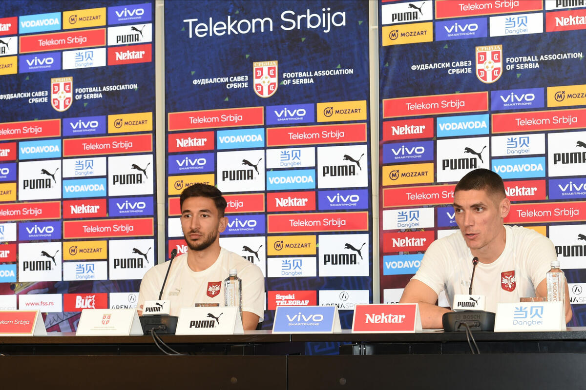 Dva dana pred duel na stadionu "Rajko Mitić" u Beogradu, na konferenciji za medije u SC FSS u Staroj Pazovi, bili su Nikola Milenković i Marko Grujić.