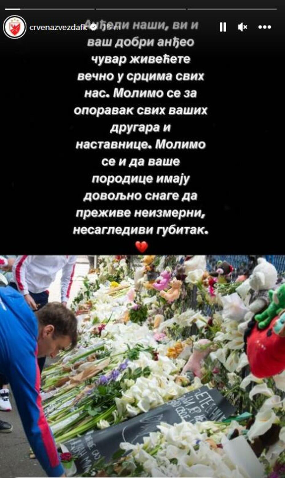 Delgacija crveno-belih, gde su bili igrači prvog tima, predvođeni trenerom Milošem Milojevićem, ostavila je cveće i upalila sveće ispred škole u kojoj je ubijeno osam učenika i čuvar škole.