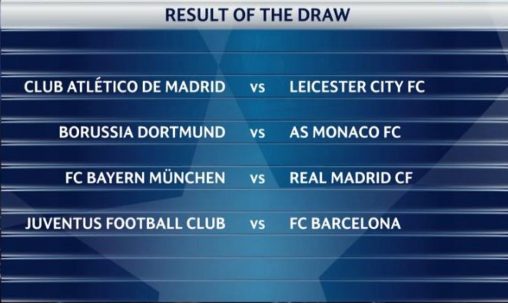 U petak je u Nionu održan žreb za četvrtfinale Lige šampiona.