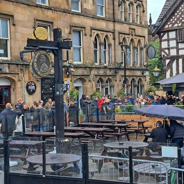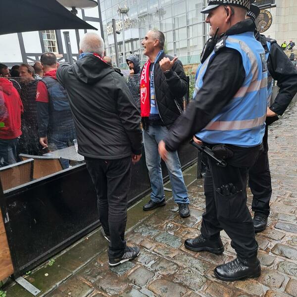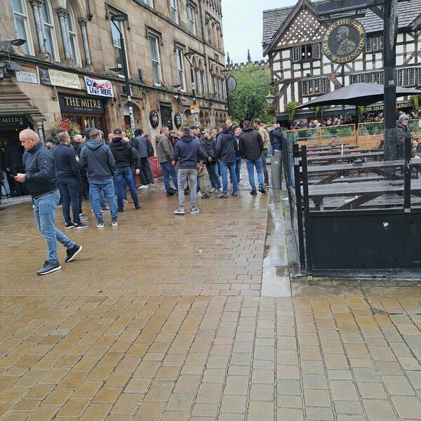 Delije se u velikom broju okupljaju u centru Mančestera, a prisutne su velike policijske snage i kamerom snimaju sva dešavanja.