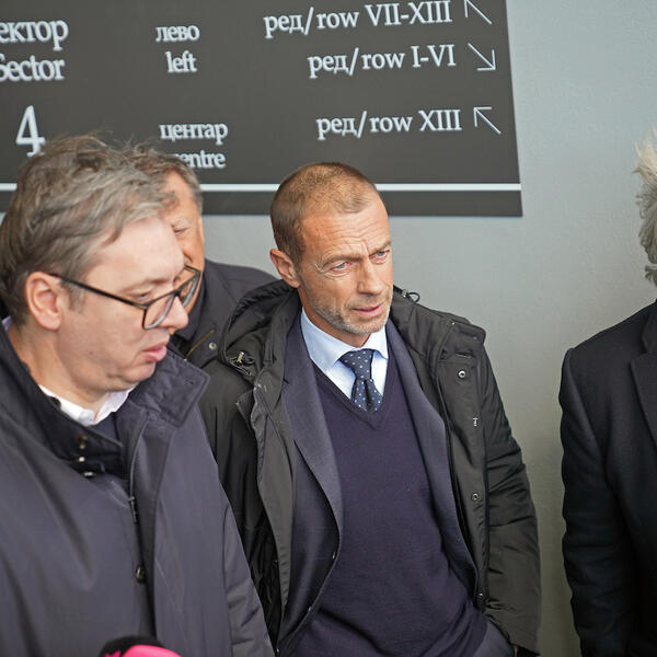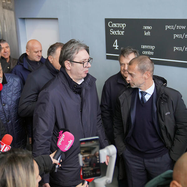 - Krasan stadion. Mi smo sa predsednikom razgovarali pre 3, 4 godine i rekao je da će da izgrade pet stadiona. Vidim da stvari idu dobro. Sada je potrebno da klub uđe u prvu ligu. Čujem da je u četvrtoj. Sve ekipe moraju da igraju tu. Za A reprezentaciju bi mogla neka manja utakmica - rekao je Aleksander Čeferin.