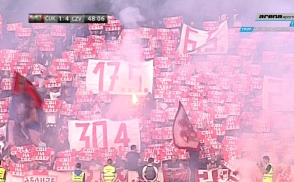 48' Delije su napravile svojevrsnu koreografiju! Uz bakljadu i datume utakmica, zovu navijače da pruže podršku ekipi do kraja sezone!