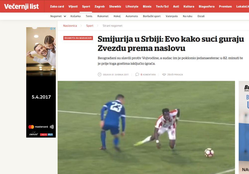 - Smejurija u Srbiji: Evo kako sudije guraju Zvezdu prema tituli - naslov je u "Večernjem lisu" u kome su čude crvenom kartonu za Antića i jedanaestercu.