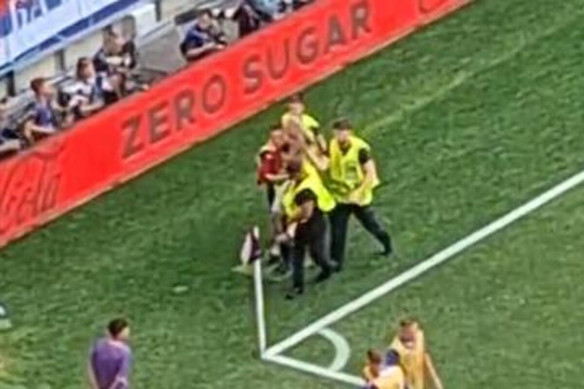 Naime, jedan navijač je uleteo na teren, ali je obezbeđenje brzo reagovalo.
