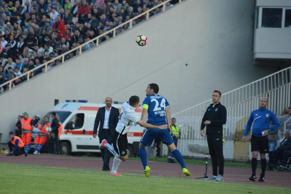 35' Radnički je imao dobru šansu, ali sada nećemo o tome! Novi nered! Grobari su zasuli Lazara Arsića topovskim udarima i petardama, meč je prekinut...