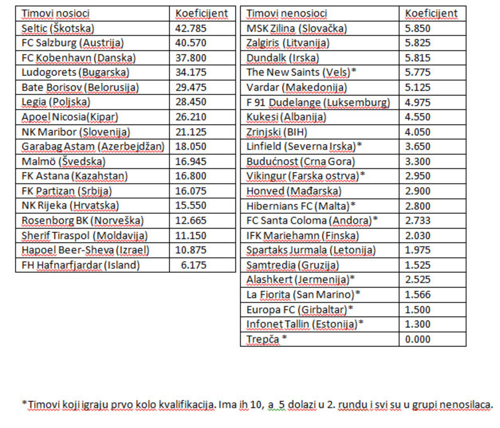 Žreb parova za 1 i 2. kolo je 19. juna od 12:00h u sedištu UEFA u Nionu, a evo i svih timova koji će se naći na žrebu.