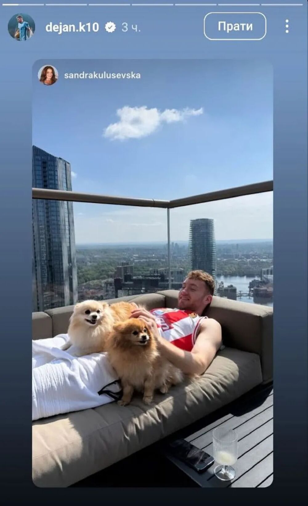 On je okačio fotku na kojoj se može videti kako uživa na terasi svog stana, a na sebi je imao zanimljiv dres.
