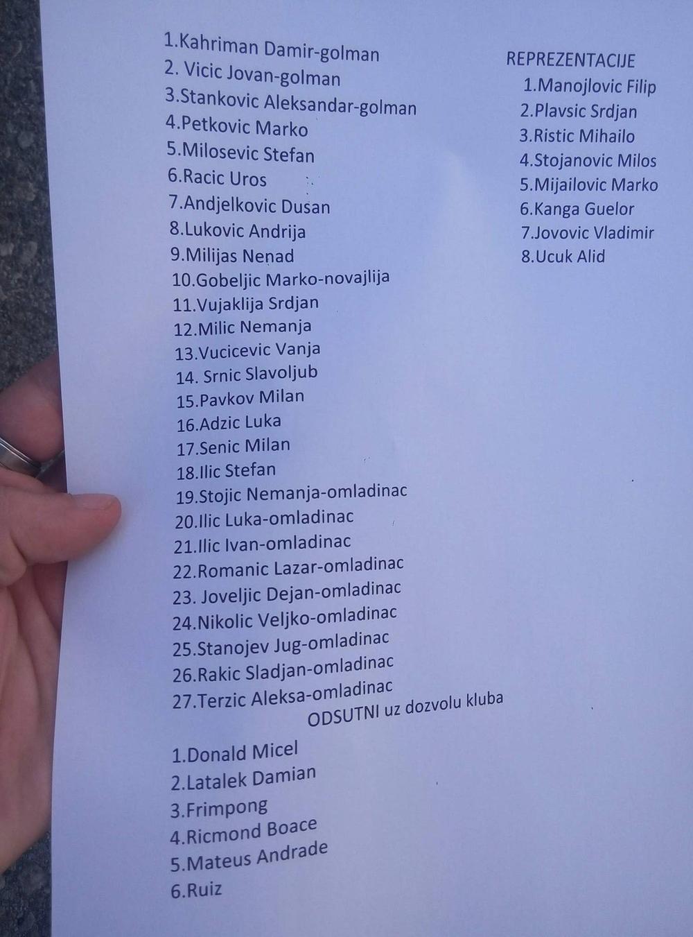 Kao što možete videti, na njemu se u odnosu na prošlu sezonu ne nalaze Aleksandar Luković, Petar Orlandić, Predrag Sikimić, ni golman Supić.