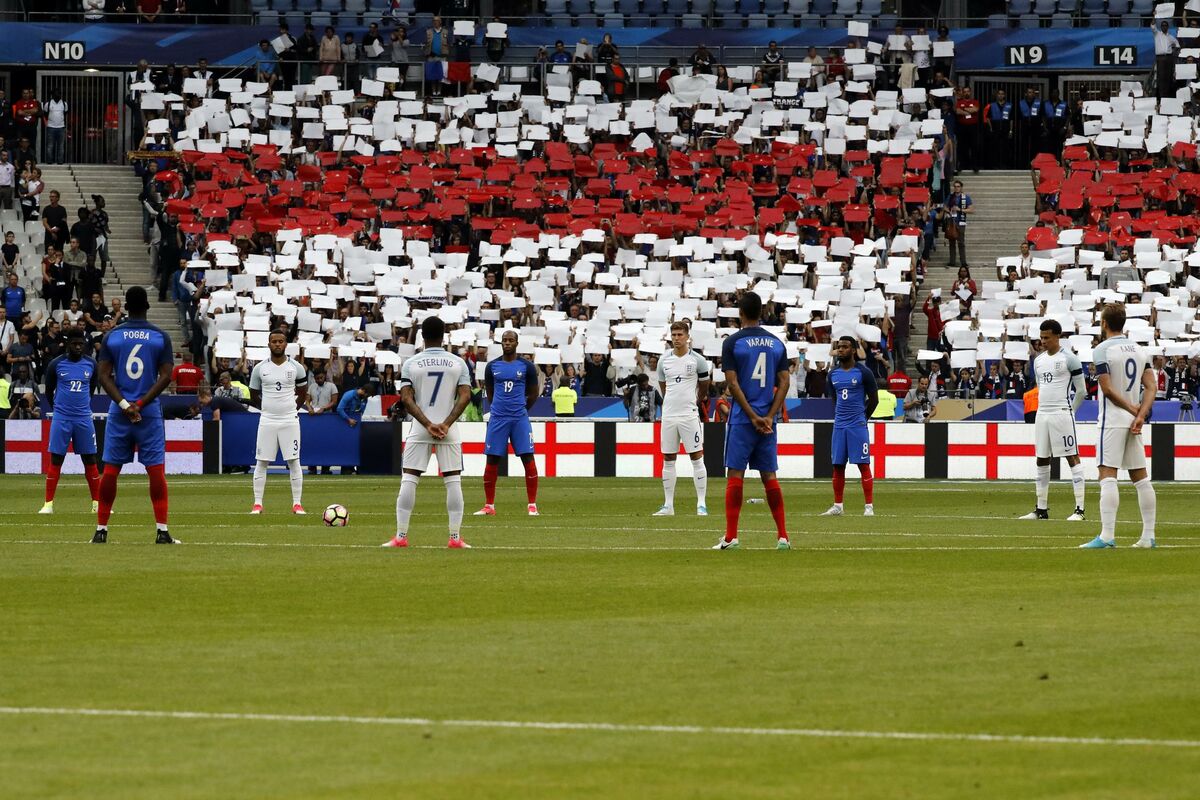 Tako su igrači oba tima na teren izašli uz pesmu benda Oejzis "Don't look back in anger", zatim je prvo intonirana himna gostiju koju su pevali i mnogi navijači, a tek onda domaćina. Održan je i minut ćutanja, a na tribinama je napravljena koreografija kojom su se Francuzi solidarisali sa Englezima.