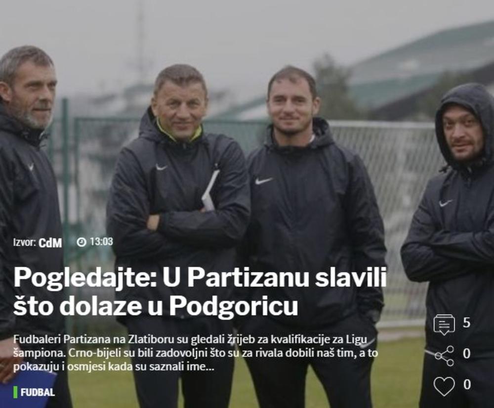 Evo kako su crnogorski mediji ispratili vest o susretu Partizana i Budućnosti