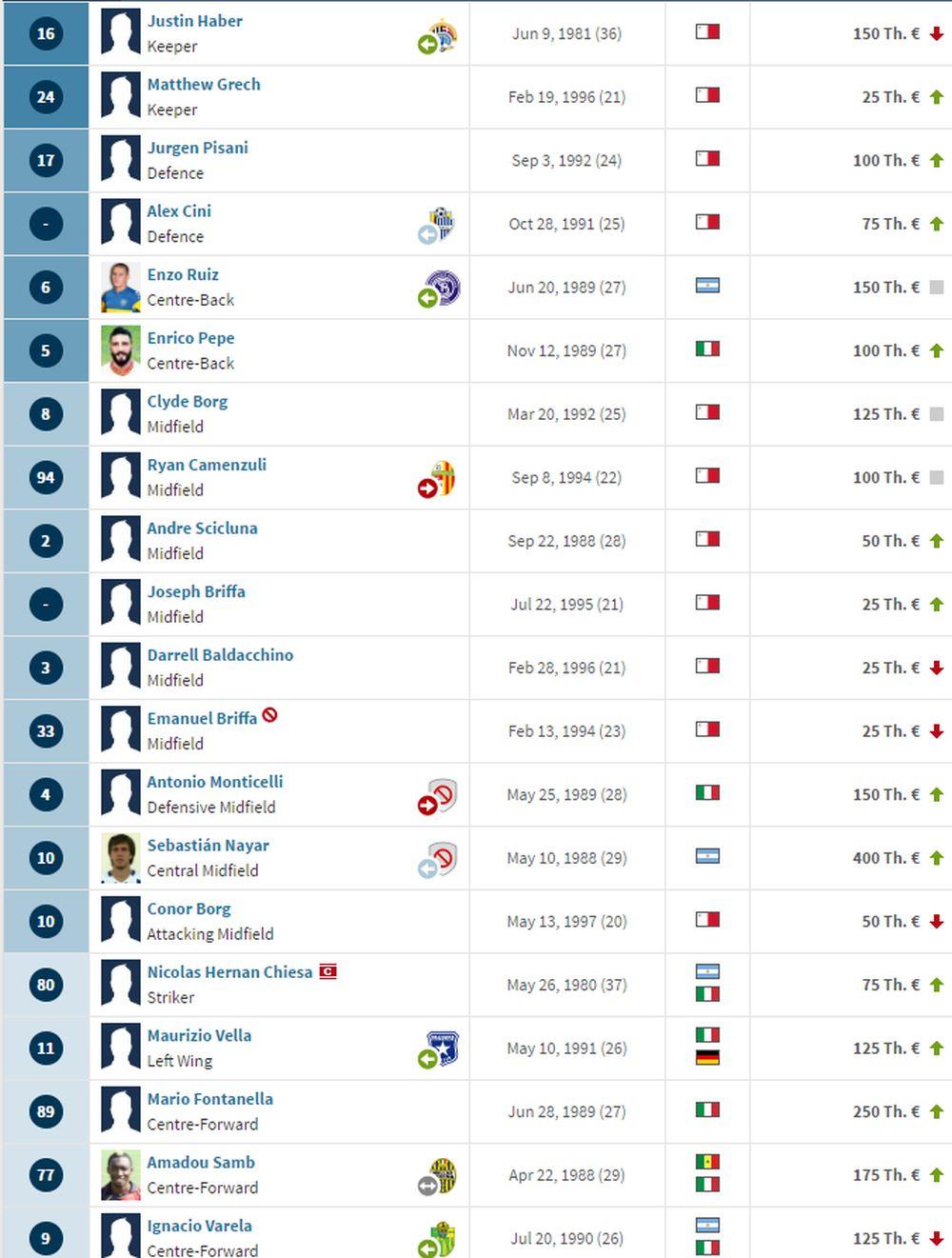 Ove godine je osvojio nacionalni Kup na Malti i tako izborio igranje u kvalifikacijama za Ligu Evrope, jer su u prvenstvu bili tek peti. Ovo im je prvi izlazak u Evropu još od 2012. godine.