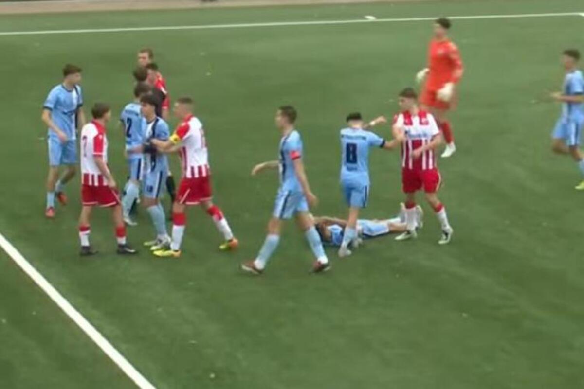 Prvo su na centru viđene manje čarke, da bi u 83. minutu nastao haos kada su klinci krenuli da hvataju jedni druge za vrat, a Andrej Živković, fudbaler Zvezde, bio je glavni glumac ovog skandala kada je odlučio da šamara i udara rivala glavom u glavu.