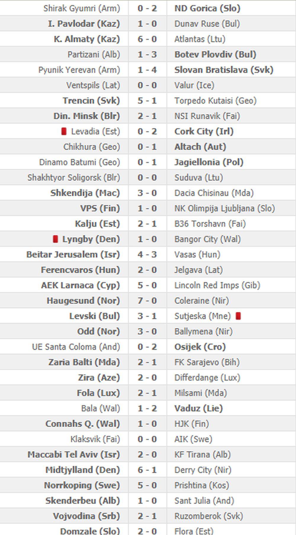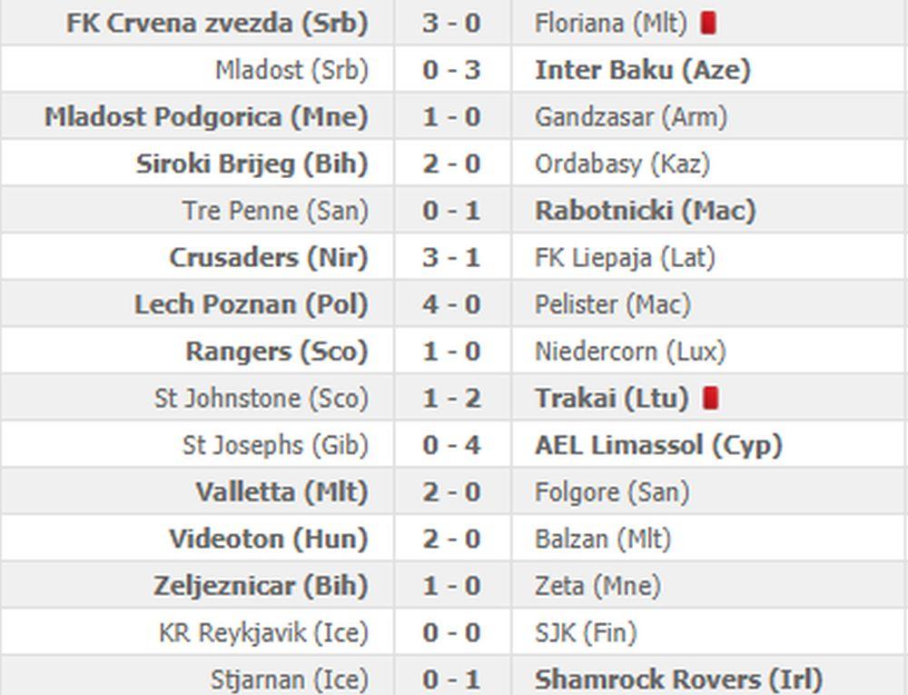 Prvi mečevi 1. kola kvalifikacija za Ligu Evrope, rezultati: