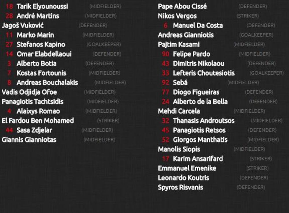 U igračkom kadru Olimpijakosa su i dva srpska internacionalca Jagoš Vuković i Saša Zdjelar, a u ovom prelaznom roku pojačali su ih i Vadis Ođiđa Ofoe, Karsela, Emanuel Emenike i Panajotos Takcidis, a pun sastav grčkog šampiona izgleda ovako.