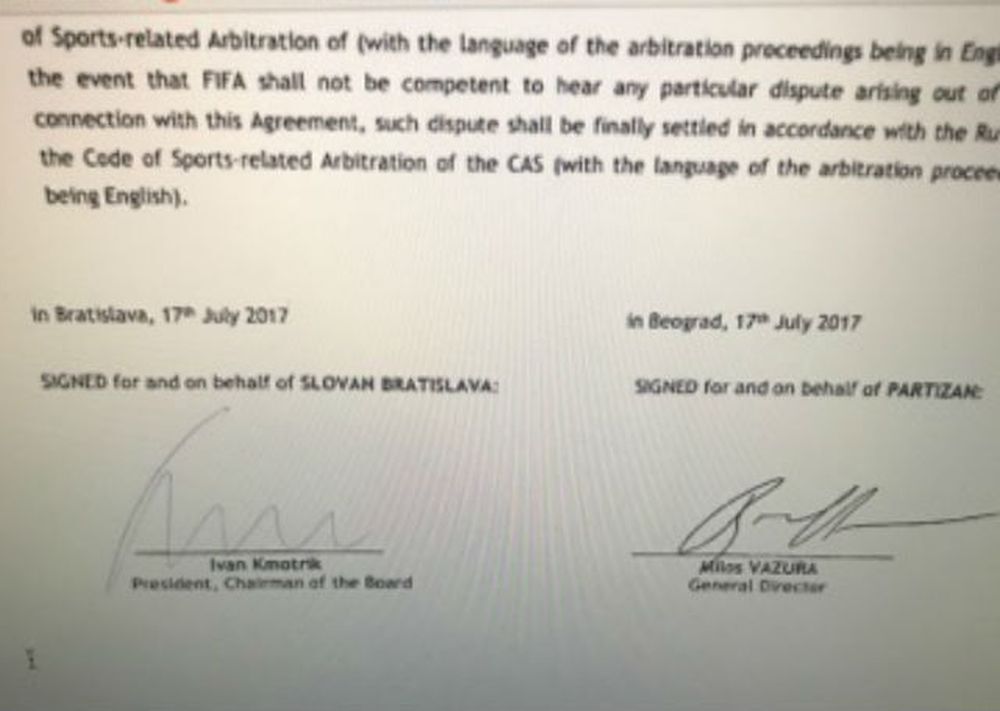 A to dokazuje i fotografija potpisa predsednika Slovana, Ivana Kmotrika na ugovoru kojim daje saglasnost za transfer.