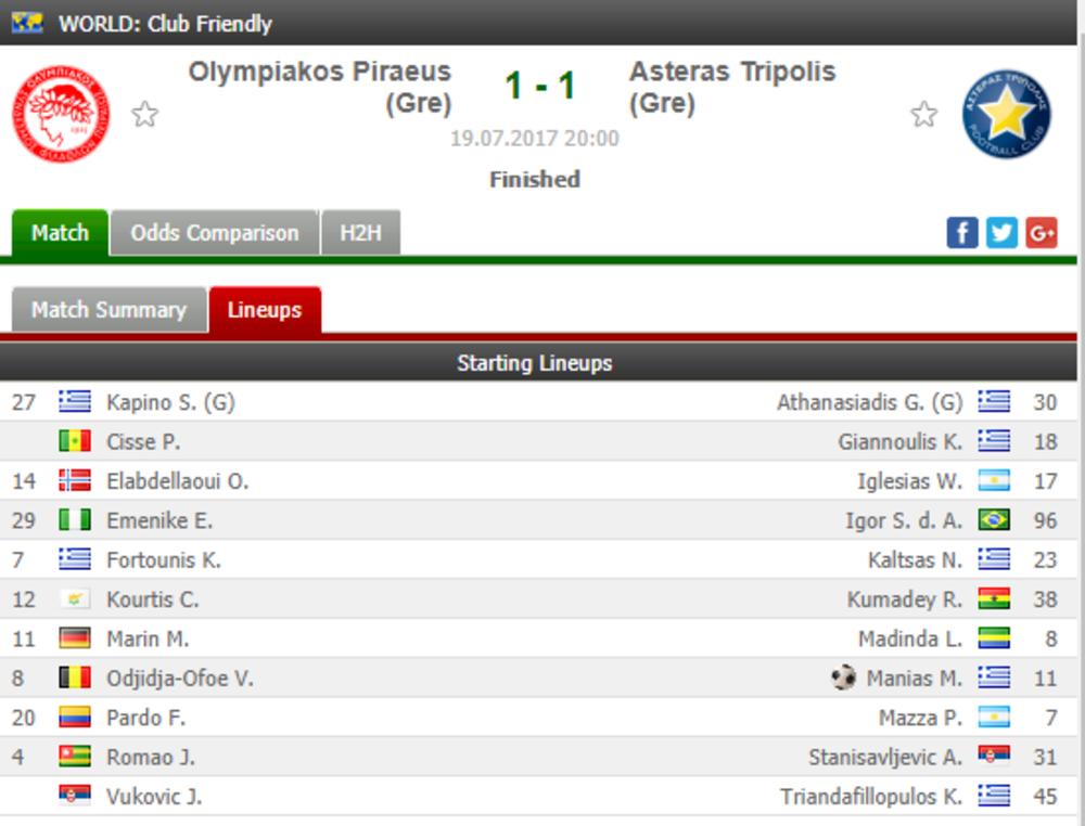 Ako je verovati treneru Besniku Hasiju i sastavu koji je izveo na generalnoj probi protiv Asterasa startna postava Olimpijakosa trebalo bi da izgleda ovako.