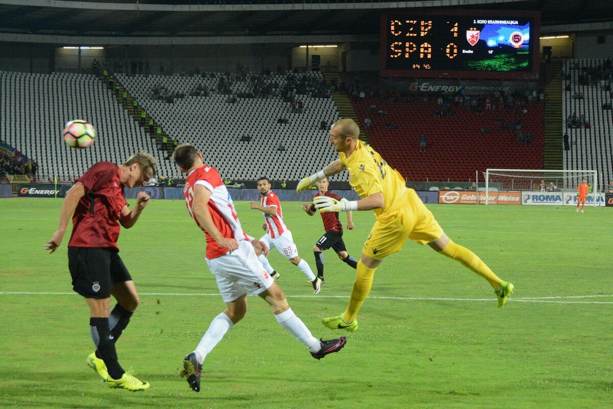 Ekipa Crvene zvezde je pred 32.816 gledalaca, pobedila Spartu iz Praga rezultatom 2:0 u prvoj utakmici trećeg kola kvalifikacija za Ligu Evrope.
