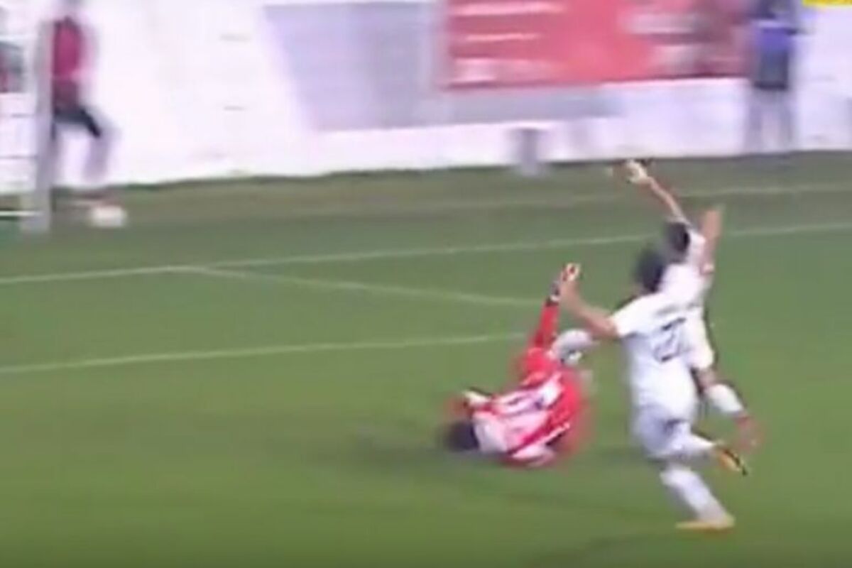 Portugalski napadač krenuo je na centaršut i došlo je do duela sa Ostojićem, posle koga je pao, a arbitar je to okarakterisao kao prekršaj