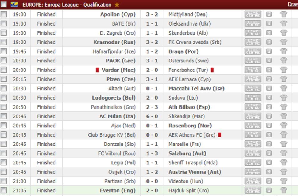 Što se tiče ostalih utakmica zanimljivo je bilo na Kipru gde je Apolon u nadoknadi došao do pobede od 3:2 protiv Mitjelanda, PAOK je bio bolji od Ostersunda rezultatom 3:1 uz dva gola Aleksandra Prijovića, Bilbao je posle preokreta u Grčkoj bio bolji od Panatinaikosa, dok je Vardar iznenadio Fenerbahče i savladao ga je sa 2:0.