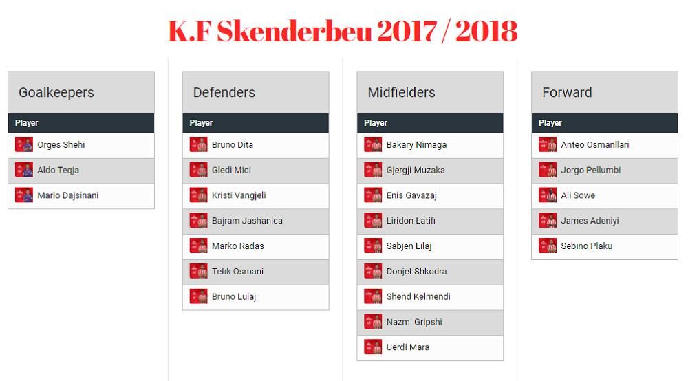 Igrački Skenderbega čine uglavnom igrači iz Albanije, ali tu je i par internacionalaca.