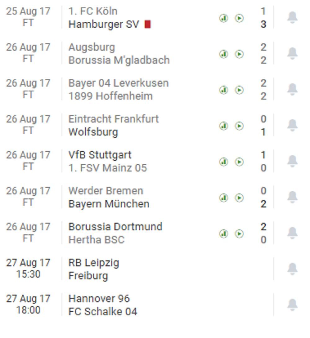 U petak 25. avgusta Hamburger je bio bolji od Kelna rezultatom 3:1, a u nedelju 27. avgusta svoje utakmice odigraće Lajpcig i Frajburg, kao i Hanover i Šalke.