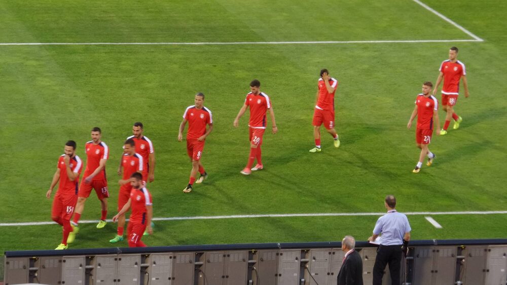 18:00 - Utakmica je počela. Veliki propust organizatora na intoniranju himni, kada su umesto Bože pravde, pustili himnu Moldavije.