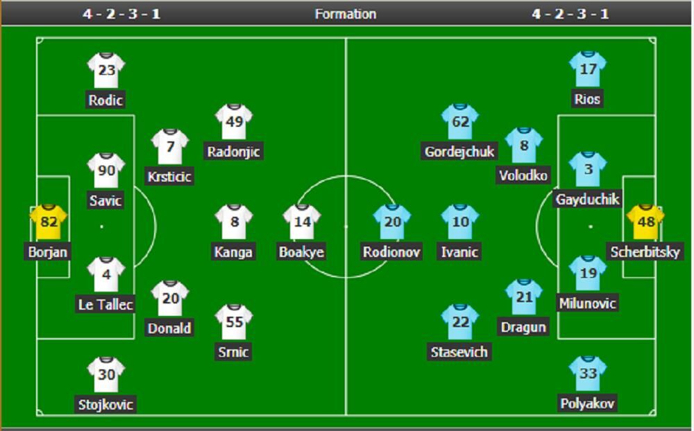 BATE Borisov: Šerbitski, Rios, Gaidučik, Milunović, Poljakov, Volodko, Dragun, Gordejčuk, Ivanić, Staševič, Rodionov