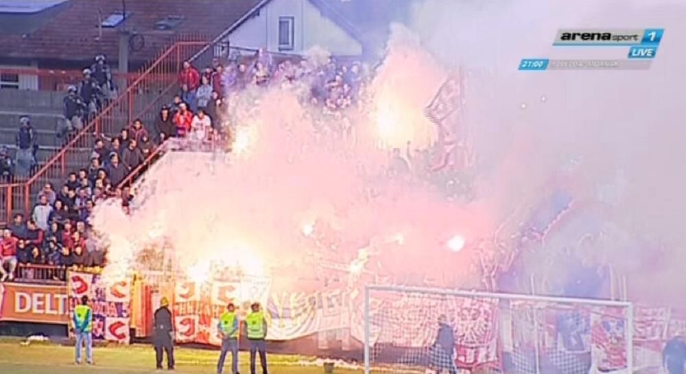 46. minut - Počelo je drugo poluvreme. Delije su start drugog perioda igre obeležile bakljadom.