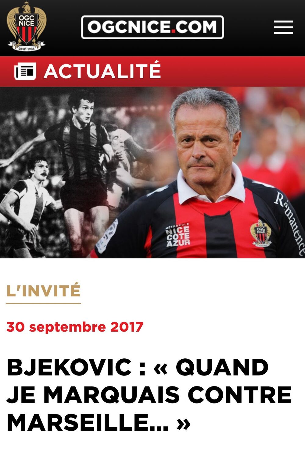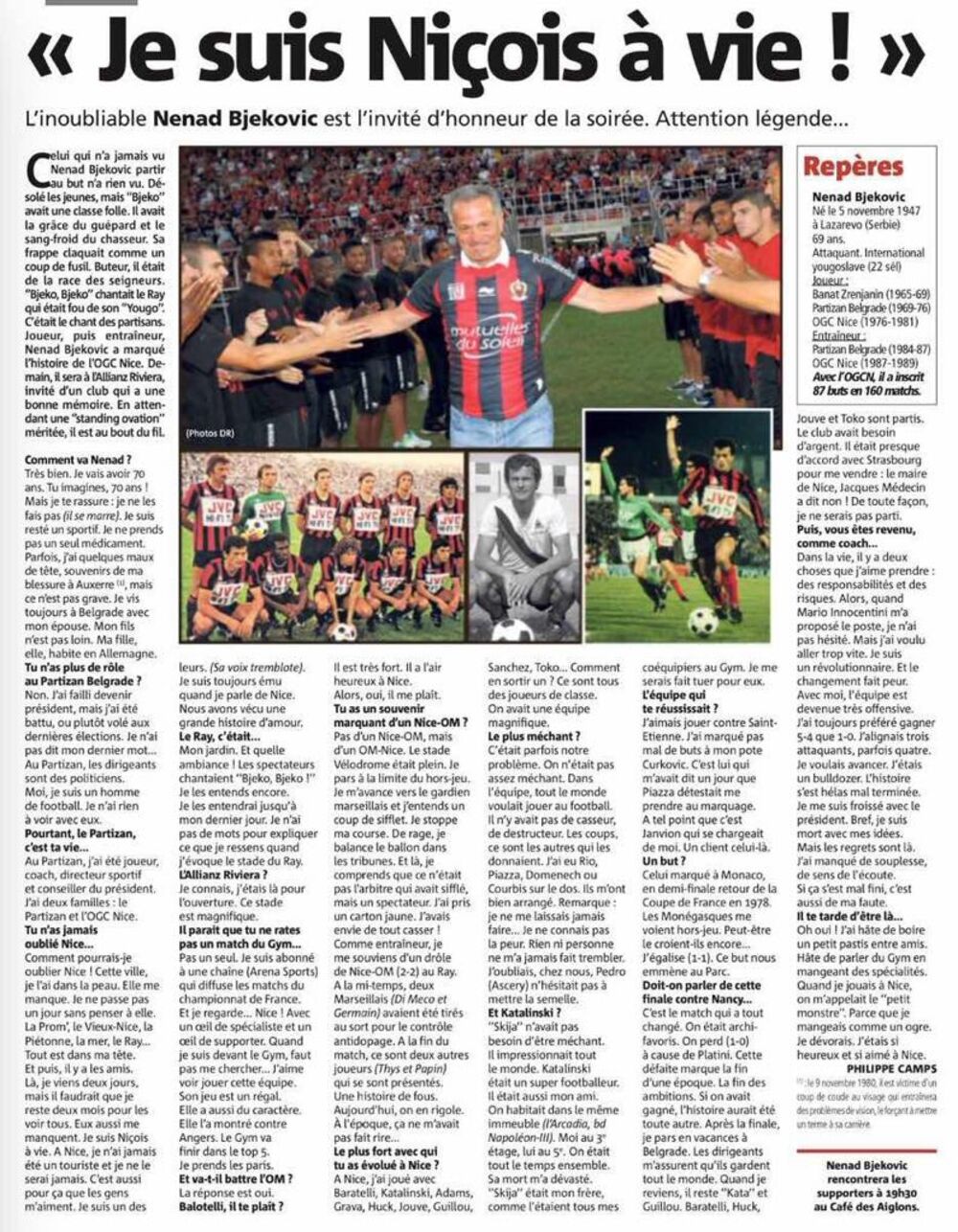 - Dirnut sam jer me i dalje pamte u klubu, kao što je klub i dalje prisutan u mojoj kući. I dalje gledam skoro svaku utakmicu. U Srbiji ima prenos sa utakmica francuske lige, a često prenose Nicu. Mnogo mi je drago što se klub vratio u vrh francuskog fudbala, kao što to zaslužuju grad i navijači. Nica je za mene nešto posebno - rekao je Bjeković u intervju za klupski sajt.