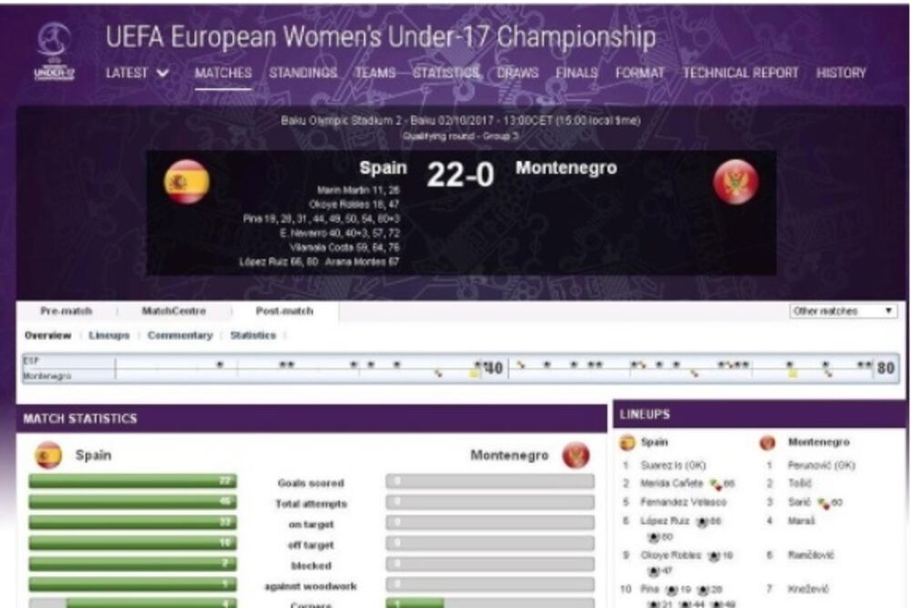 Španija iskalila bes na sirotoj Crnoj Gori! Pomislićete da vam je neko sipao drogu u piće kada vidite rezultat! (FOTO)