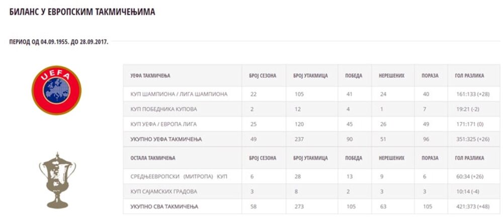 Bilo je uspeha u evropskim takmičenjima, a evo i kompletnog bilansa crno-belih na utakmicama u Evropi: