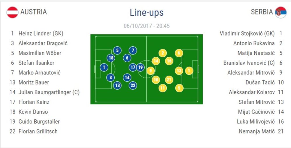Sve je delovalo sjajno kada je Luka Milivojević u 11. minutu doveo Srbiju u prednost, ali potom se desio neshvatljiv pad u igri i golovi Gvida Burgštalera u 25. minutu i Marka Arnautovića u 76. minutu.