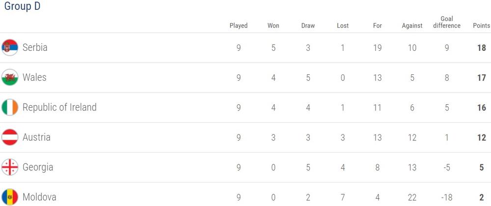 Međutim, u slučaju našeg poraza u meču sa Gruzijom i pobede Velsa nad Republikom Irskom, ili Irske nad Velsom, reprezentacija Srbije više neće zavisiti od svoje grupe, već od mečeva iz grupa A i H.
