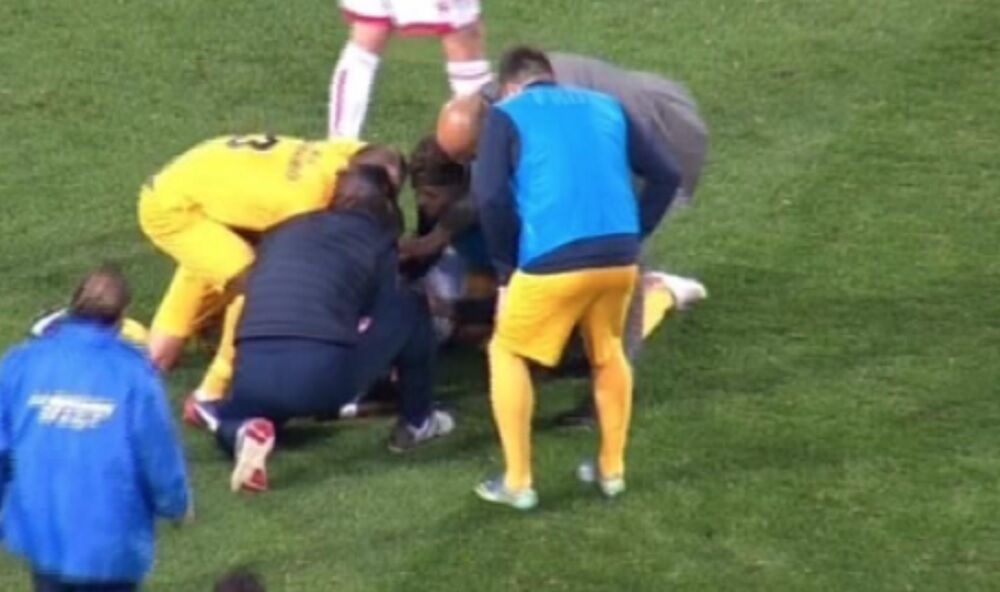 Naime, pred kraj duela Zvezde i Dinama posle jednog duela sa protivničkim igračem, na zemlju je pao Abraham Frimpong!