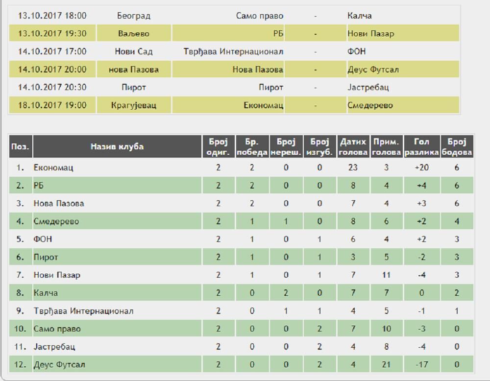 Evo kompletnog rasporeda trećeg kola i trenutne tabele Prve futsal lige Srbije: