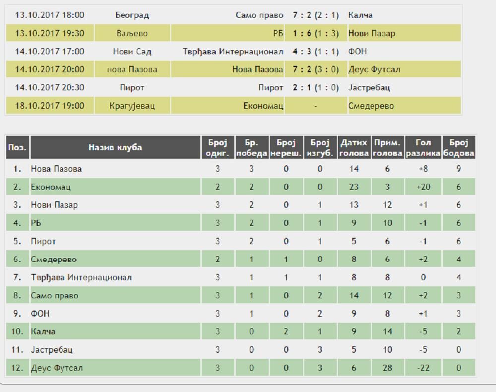Evo svih rezultata i tabele posle odigranog, nekompletnog trećeg kola Prve futsal lige Srbije:
