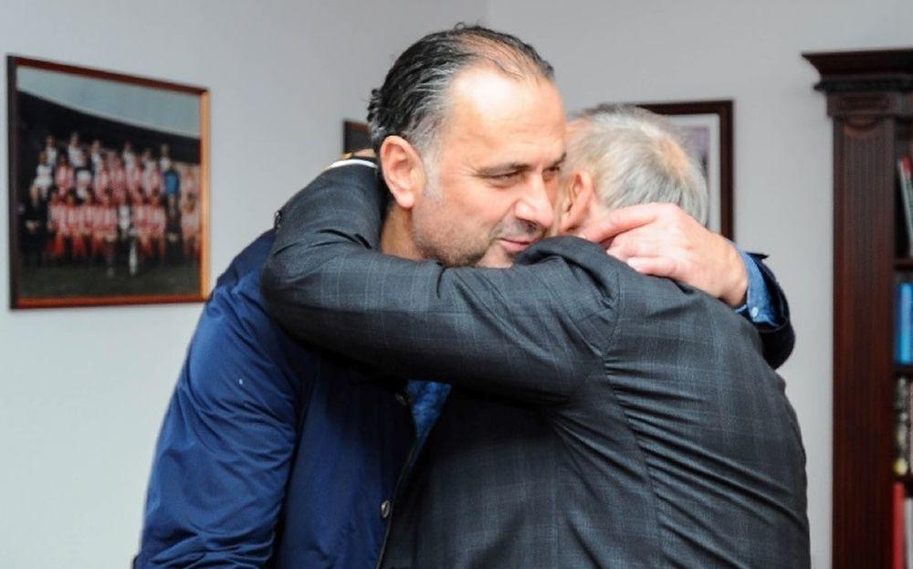 Generalni direktor Zvezdan Terzić, predsednik Svetozar Mijailović i počasni predsednik Dragan Džajić dočekali su nekadašnjeg saradnika i čoveka koji je doneo poslednju titulu klubu, a otišao iz njega na kraju prošle sezone.