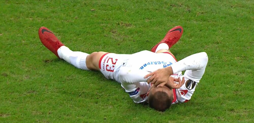 4' - Milan Rodić je posle jednog duela ostao na travi, ali ubrzo se pridigao i nastaviće meč