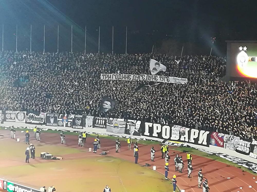 Grobari i Delije su grmeli tokom svih 90 minuta, a u toku svega toga nije moglo da se preskoči skandiranje Ratku Mladiću, bivšem komandant vojske Republike Srpske koji je nedavno u Hagu osuđen na doživotnu robiju.