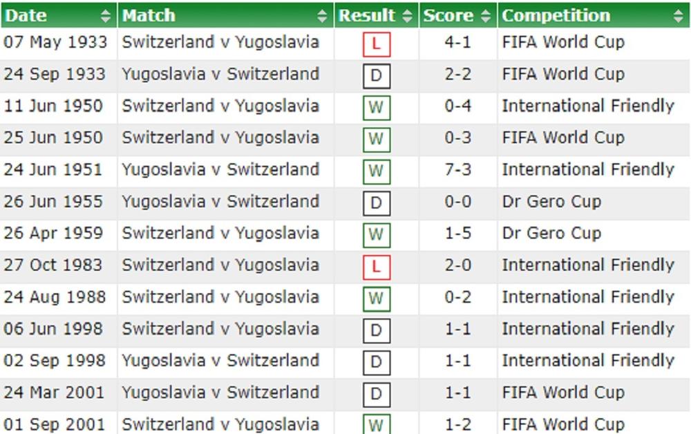 Prvo je red da se osvrnemo na prethodne duele Srba i Švajcaraca.
