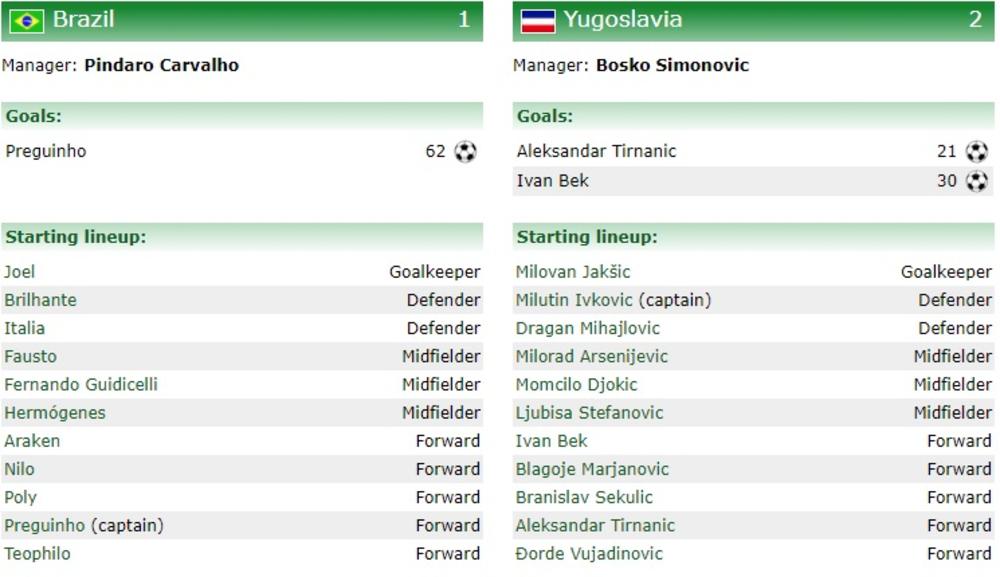 Naša selekcija je tada slavila sa 2:1, a strelci su bili Aleksandar Tirnanić i Ivan Bek koji su pogađali u 21. i 30. minutu.